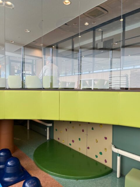 今回はたまたま、室内遊具の出入り口近くに場所取りができたので、室内で遊ばせました。