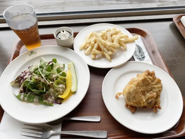ピザの他にはフライドチキン、フライドポテト、サラダ、コーヒーゼリーをいただきました。