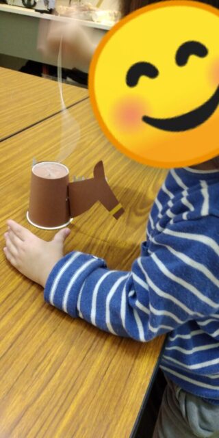 各テーブルを回り作り方も教えてくれました。紙コップの馬さん完成!!