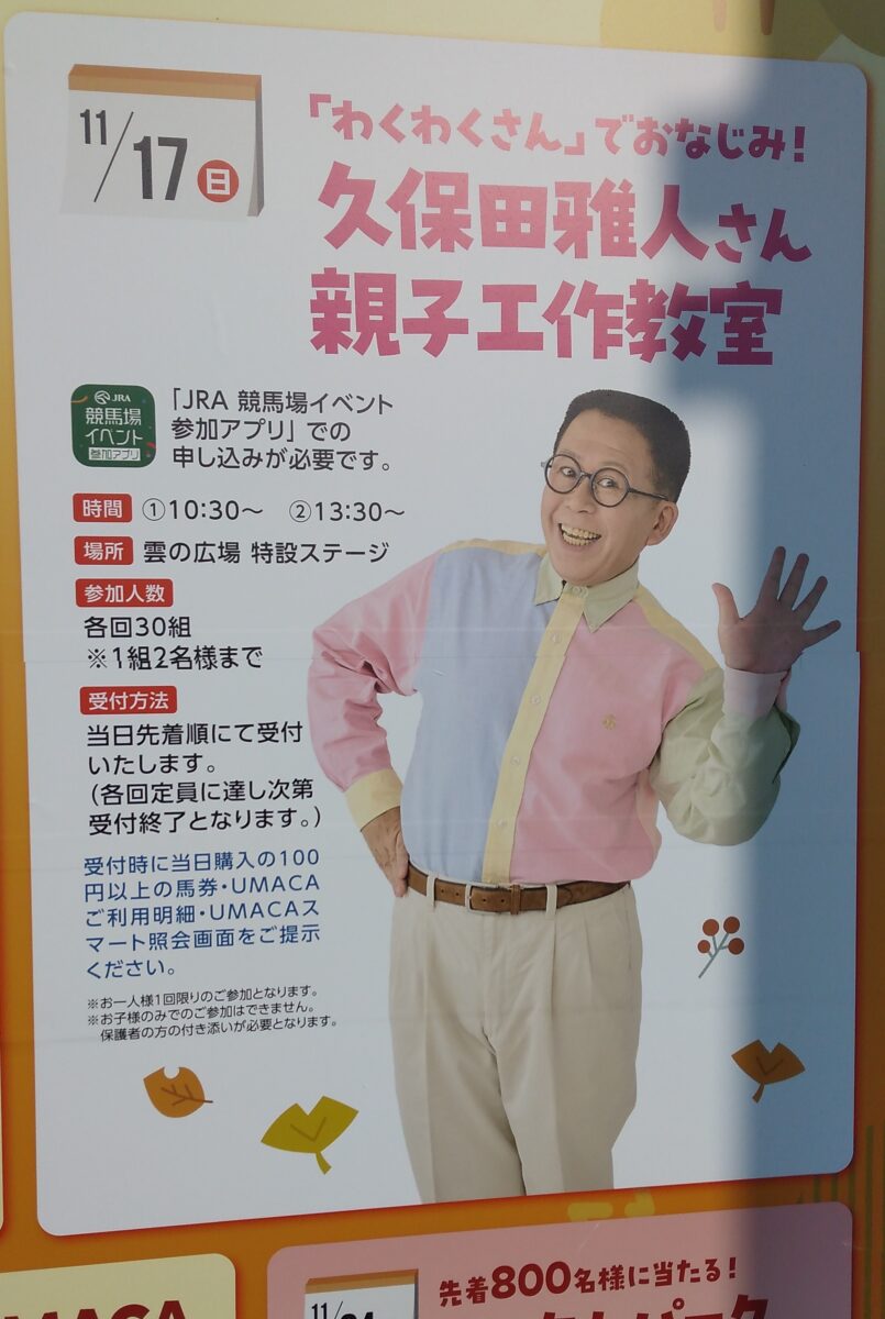 こんにちは ままっち!サポーターのすーさんです。わくわくさんが競馬場に来る!!しかも、工作を教えてくれるなんて!!この日を待ちわびて行ってきました。
