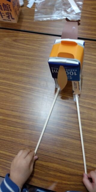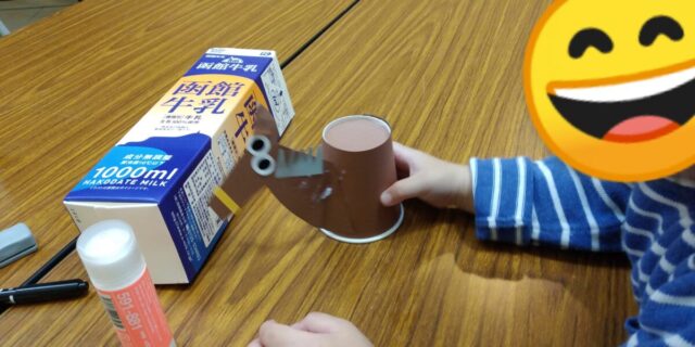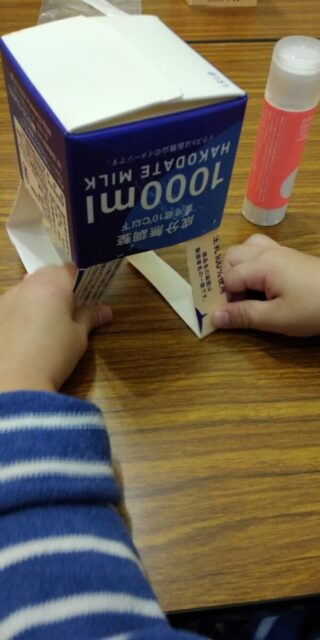 続きまして、牛乳パックを使った工作。なんと、2つの手作りおもちゃを教えて頂けるなんて\(^o^)/