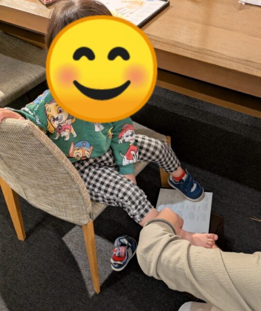 一緒に完成したペタペタを持って記念撮影の予定が動いて動いて無理だったので、近くの場所をお借りして記念撮影