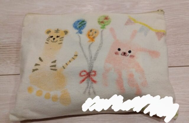 こちらは、女性センターの講座で行われたペタペタアートのポーチ。大事な文房具を入れています。はさみやのり等色々入るので、助かります☆