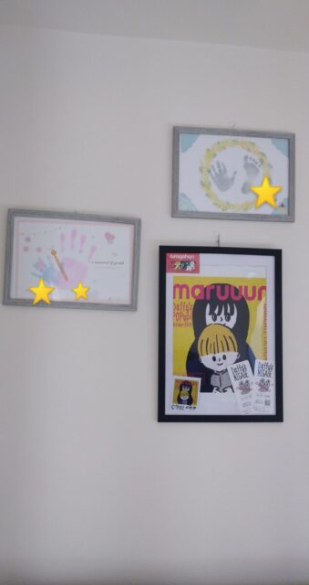 右上は、1歳記念に☆左はその時に長女と長男の手形で先生に可愛くちょうちょにしてもらいました(^o^)