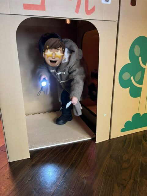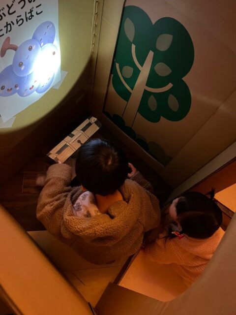 薄暗いし、2歳になったばかりの娘にはまだ厳しいかな…とも思いましたが、『◯◯(娘)としっかり手を繋いで、ゴールまで行ってね。フルーツのカードは、◯◯(娘)の分とあわせて2枚ずつとってきてね。』と息子と約束をし、送り出しました。