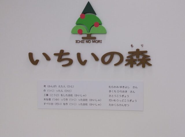 いちいの森の通路を挟んだ向かい側には、西松屋。いちいの森と西松屋の間には、個室ベビーケアルームの設置がありました。