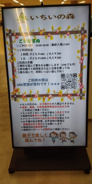 いちいの森目当てで行きましたが、最終受け付17時だったので諦めました。いちいの森の場所は、旧ヨーカドーのビレッジバンガード〜おもちゃ売り場〜子ども服売り場なので、かなり広い印象。遊べるおもちゃ等は無い様子でしたが、入り口に近い辺りにボールプールがありました。