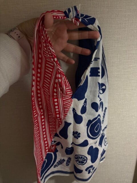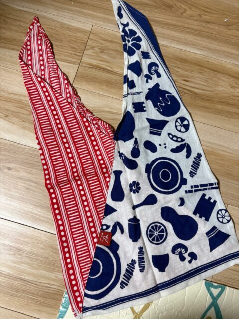 縛る位置で長さを調節出来るので、長女のお手伝い心にぴったりで…次女用にも欲しいんですがねぇ〜手拭いだから軽いし、小さくなるし…また探さないと…です。
