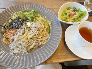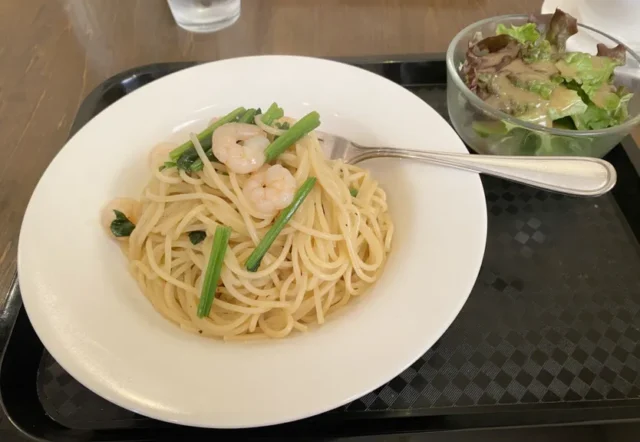 エビとほうれん草の和風パスタ(メニュー名間違ってたらごめんなさい)をいただきました。