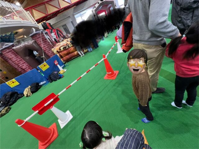 かなり吹雪いてきたので、噴火湾パノラマパークの室内にあるエア遊具(エア遊具が設置されるのはお祭り時のみで、普段はキッズアリーナとして遊べます)で時間潰し。