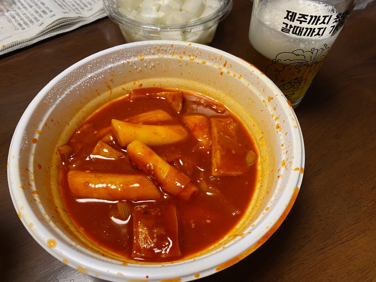 今回はキンパとトッポギを買って、韓国ランチタイムです!!