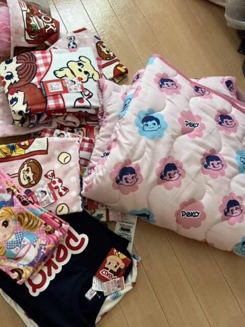 余談ですが、先日しまむらで、ペコちゃんのコラボ商品が販売されていたのですが、販売開始当日に行くことができず、数日後に行ったら一番のお目当ての品が売り切れだったので、函館市内のしまむらを5店舗はしごしました(笑)結局どこも売り切れだったのですが、他にもたくさん購入できたので大満足です!しまむらでこんなにお金使ったの初めて(汗)