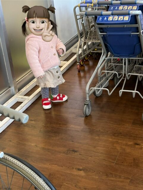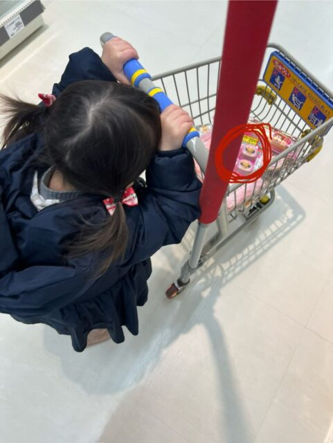 重たいものは私のカゴに入れて、軽いものだけカートに入れてもらおうと試行錯誤するも、全て自分のカートに入れないと気が済まない娘。