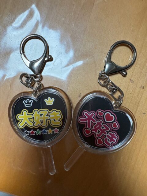 一人はヲタ活でまさかの同じグループが好き!と判明してから、よくお話を…もう一人は、担任の一人で、娘ととっても向き合ってもらい、助けて頂いた先生に…裏はお名前入り( ´艸`)このうちわのアプリをヲタ活の先生に教えてもらったので作り…セリアのオタ活グッズに行き見つけてきました!