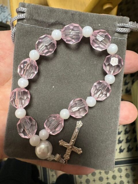 自分で作ったロザリオ。新約聖書。自分で描いた絵を焼き付けた?マグカップ。でした。保護者会からは、名前入りの鉛筆。期待してなかったのですが…可愛い(*/□\*)♡