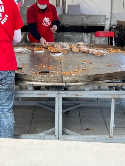 最後尾に近かったので、残念ながらアップルパイを焼いている光景は見られなかったのですが、先頭の方で並んでいたお友達が写真を撮って送ってくれました。