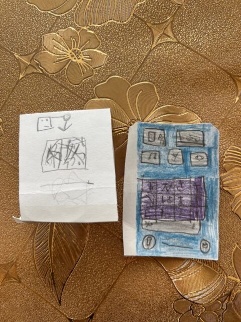 そして、さすが令和生まれ!支払い時のキャッシュレス決済QRコードや、スマホ、注文タッチパネルまで作成(笑)本当よく見てるなぁ…と感心するほど。遊び方が昔と全然違うので、おばさんツイテイケナイ…。時代って怖い…。