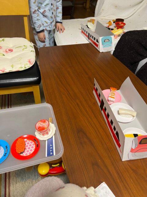 満足したかな〜と思ったら、帰宅後また始まるお寿司やさんごっこ(笑)