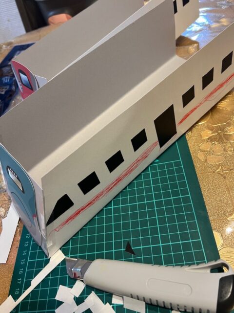 さすが幼稚園児。土台だけ作ってあげたら、新幹線の窓やら模様やら、自分で切ったり貼ったり。今さらだけど、入園して早2年。知らない間にハサミやお絵かき、ぬり絵、制作など、ビックリするほど上達!絵に関しては、私より遥かに上手!絵心がない私は、息子がピカソに見えます(笑)幼稚園様様です。(先生たちに本当感謝…)