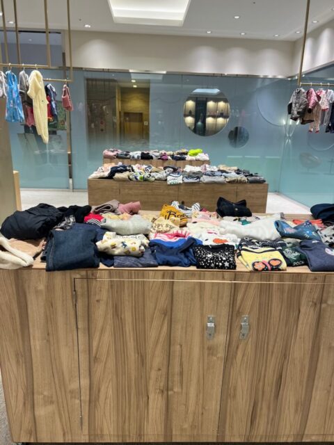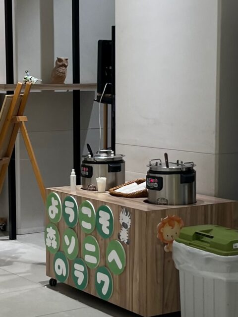 子ども達が遊んでいる間、私はそらにわさすてなぶるという、キッズアイテムの物々交換をしておりました。不要になった子供服やおもちゃ等をフロントに持参(最大3点まで)すると、持参した数と同じ分だけ欲しいものと交換できるというシステム。
