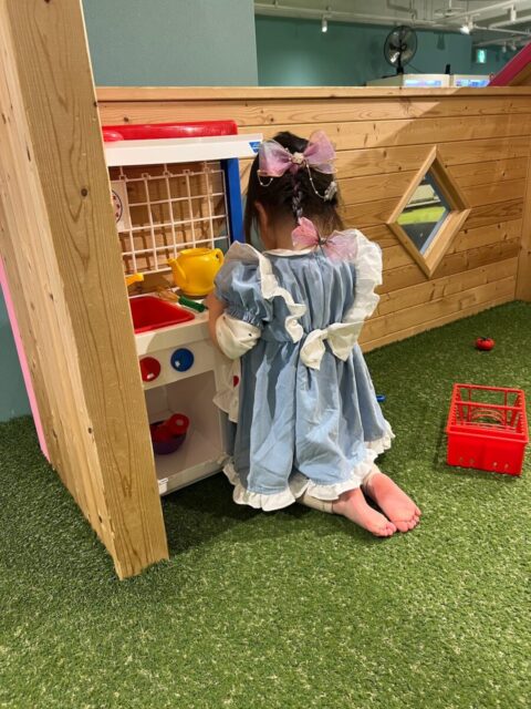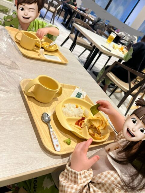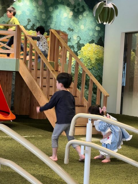 お食事会場に遊び場が併設されているので、子ども達は食事が済んだ後に遊べるし、その間、親はゆっくりご飯を食べられるという…本当にありがたい!