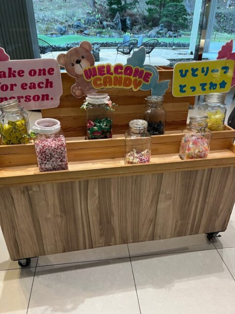 ウェルカムドリンクならぬ、ウェルカムきのこ汁が絶品でした。ウェルカムキャンディも子どもウケ最高!