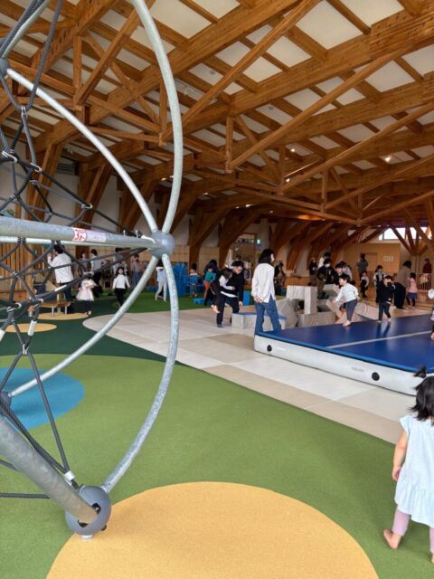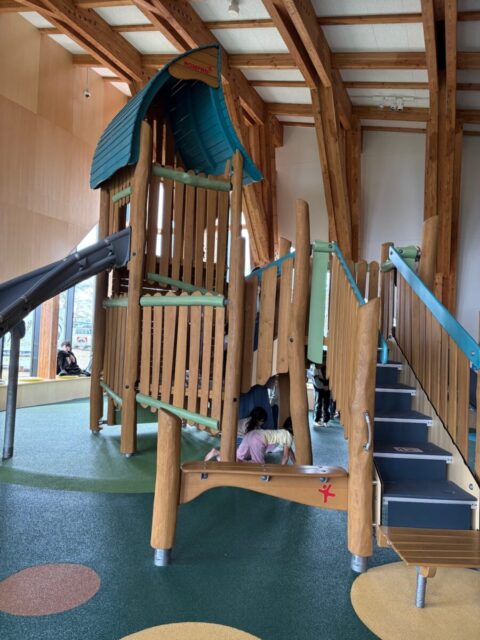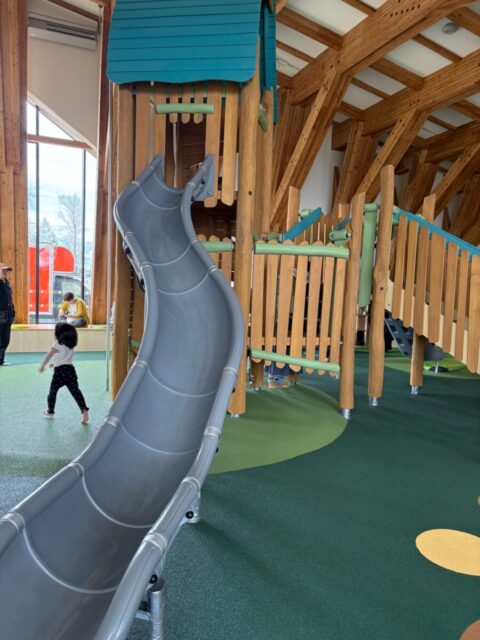 広さはキッズプラザの方が広い?って感じですが、木の温もりがある遊び場でした!