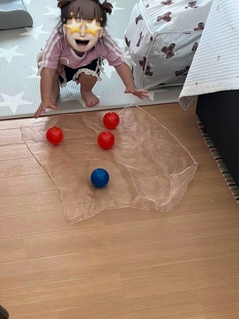 帰宅後、その日やったことを家でも実践している娘。(2歳児なのに感心!)この先、勉強も同じように家で復習してくれる子になってくれたらいいな…🤣