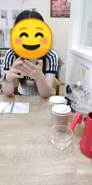 まずは、何も聞かない状態でコーヒーを淹れて、他の受講生さんと私たち親子のと飲み比べ。同じ豆、同じ道具を使ってるのに、淹れる人によってこんなに味が変わるなんて、びっくりしました!! 面白い!!