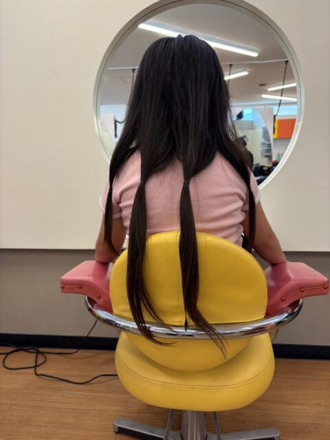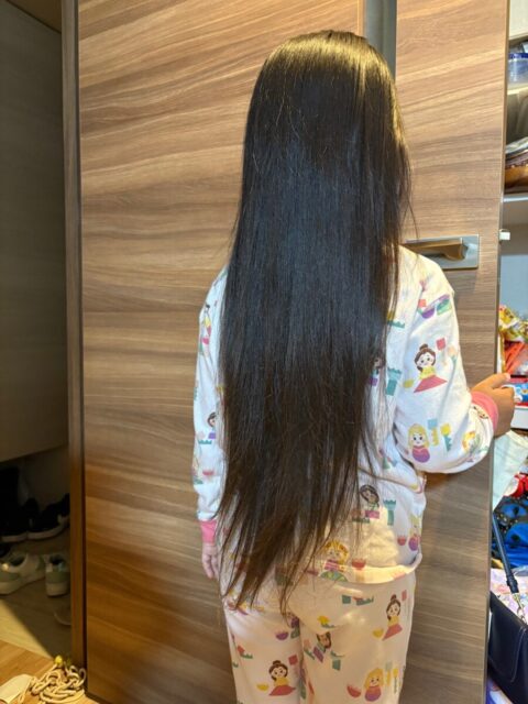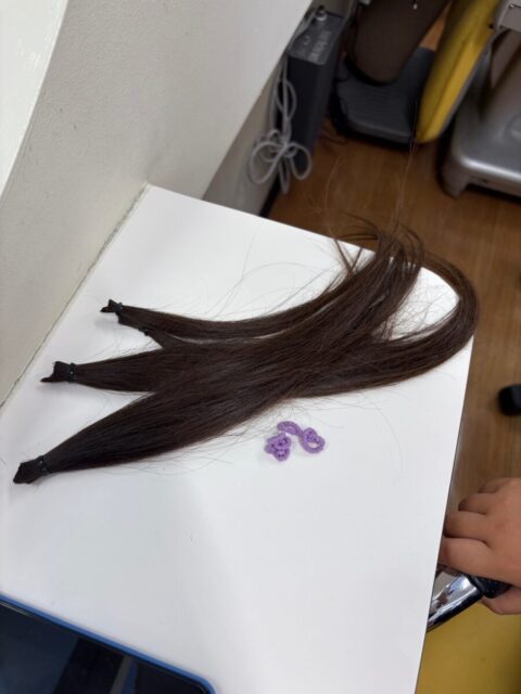 娘には「病気で髪の毛は生えない子や、病気を治すために強い薬を飲んでて生えない子のために髪の毛をプレゼントしてあげたら?」と話したら、喜んでもらえるなら!と快諾。私の担当美容師さんに相談!切っても髪の毛を縛りたい。ってことなら、もう少し伸ばした方がいいよ。と言われ、今回まで伸ばしていました。
