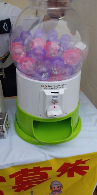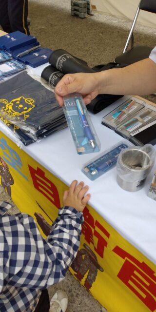 自衛隊ガチャガチャでは、2等のボールペンを当てた長男。