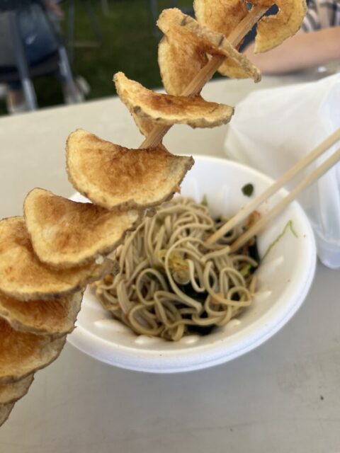 去年、納涼祭で食べた讃岐うどんがとても美味しかったので、今年も食べたいなぁと思っていたのですが、残念ながらうどんはなく、ななえ手打ち蕎麦愛好会さんの冷やしタヌキそばが販売されていました。そばよりうどん派な私でしたが、30代になると、そばの美味しさがやっとわかってきました(笑)
