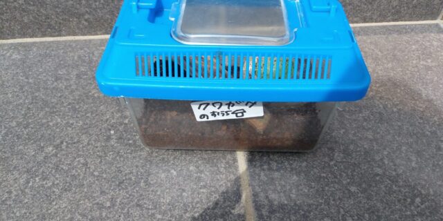 夫が知人からもらってきた、メスのクワガタを飼い始めました!ほとんど土の中に居ますが、たまに餌のゼリーを食べている姿を見ると、お!いるいる と嬉しくなります。