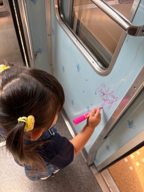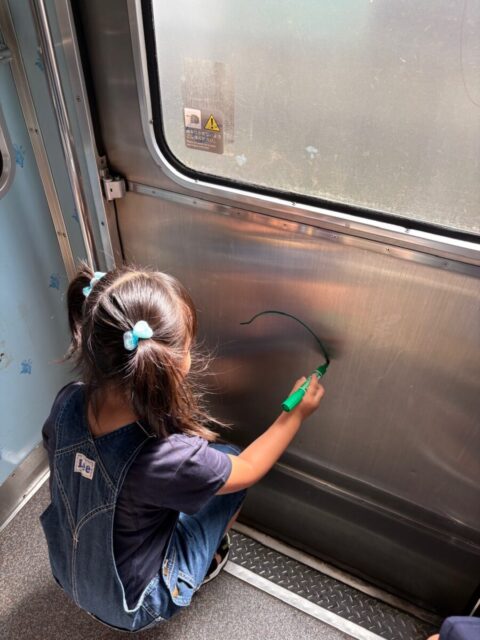 現役を終えた車両にお絵描き!ほとんどの人はお疲れ様。等の言葉でしたが…次女は落書きでしたw
