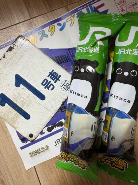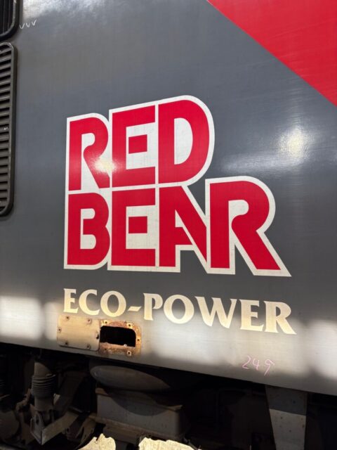 レッドベアの前でJR貨物の運転手さんの制服を着て写真を撮ったりしてきました。