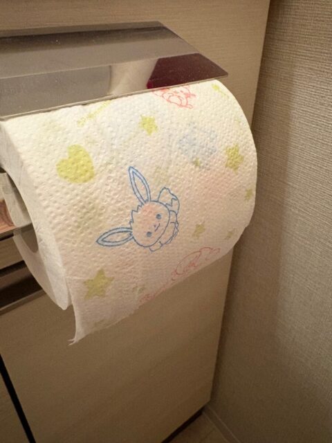 父が長女のトイトレ時に使ってたトイレットペーパーを思い出し、買ってきてくれました。ペーパーはポケモン◯匹分だけ出すよ。と話してたのを思い出し、装着。ちなみに、ちいかわも待機してますw