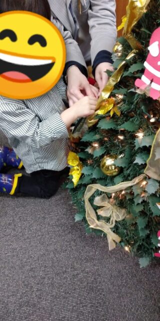会場に着くと、まずは用意して下さっていた、ツリーの飾りをツリーに飾りつけ。