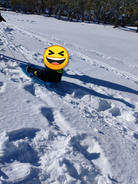 次の日もいとこ達と一緒。今期初のソリ遊びをしました。