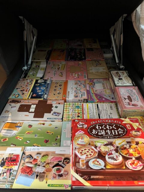子育てしながら、こんなに細かいのもの(一度買ったことのある方はおわかりだと思いますが、大人でも紛失してしまうほど細かい…)を開封する時間も気力もないので、子育てが落ちついたら(いったい何年後だ?笑)ゆっくり開封式をしようと楽しみにしていたのですが、子ども達に欲しい、欲しいと言われ、現代のぷちサンプルのクオリティを確認したかったのもあり、仕方なく1箱だけ開封することに……