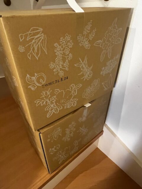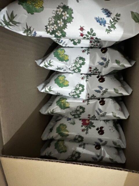 1箱12袋入りの箱買いをすると、素敵な六花亭の花柄ダンボールに入っているので、ダンボール目当てに3箱も購入しました(笑)