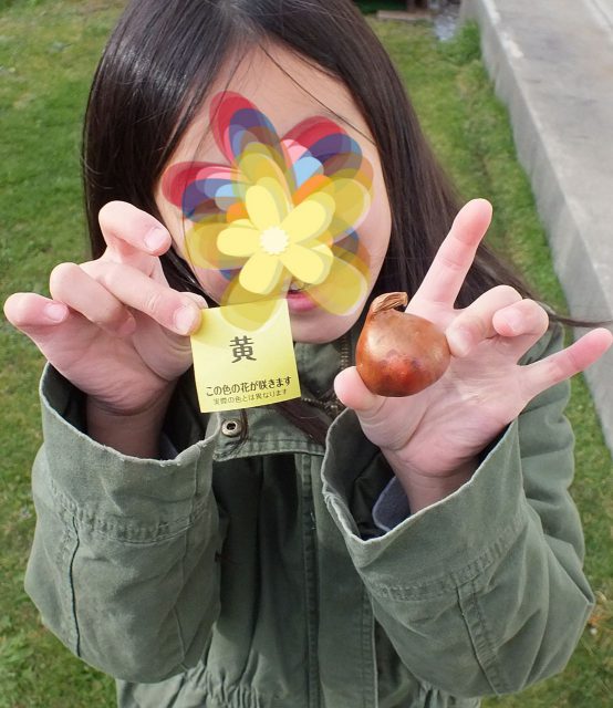 栗の実やタマネギに似ている球根。孫は黄色がお気に入り。