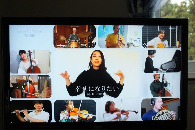 2曲目は、「幸せになりたい」 今年注目の挟間美帆がアレンジし、世界中の音楽家とリモートで共演。ウイズコロナ時代ならではの新しい音楽の形。