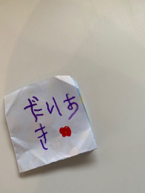 息子のぽっけ 日記 2021.02.09 この記事は約1分で読めます。 息子の幼稚園ジャージからこれが出てきた。 誰からもらったのかニヤニヤ聞いたら、 男の子からだった🤣 こんな感じで2月もゆる〜くブログを再開していこうと思います。(サボり気味) お世話様でした、Tammyでした。
