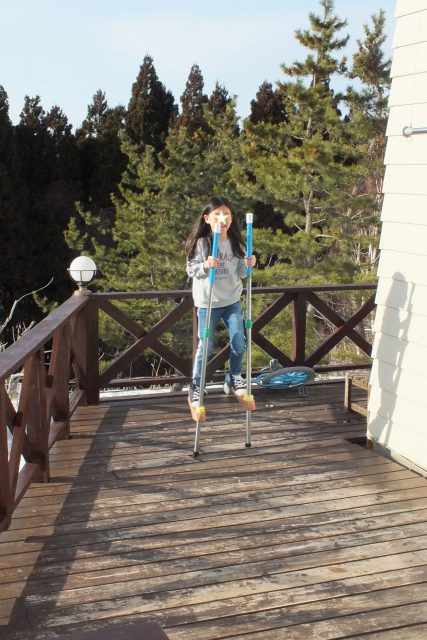 外に出ていても寒くなかったので、しばらくぶりに竹馬にも挑戦。