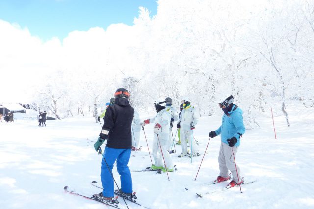純白の樹氷が美しさを競い合っていました。私のスキーの楽しみは、こんな絶景に癒されること。