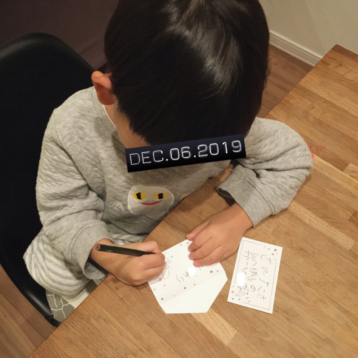 拝啓、サンタさん。 日記 2019.12.09 この記事は約1分で読めます。 と、ある夜のことでした。 いそいそと手紙をしたためた末っ子。 宛名はサンタさん🎄 筆が乗ってきた!! サンタさんの似顔絵も描き描き✏︎ 高まる胸の鼓動を抑えつつ就寝zzz。 からの、朝です。 手紙が消えてる!サンタさん、お手紙持って行ったみたい!と喜ぶ末っ子。ピュアだなぁ。母さん泣けてくる。ウルウル…(1ミリリットルの涙) ていうか、髪!! 渾身の寝ぐせ! 色んな意味で感動した朝だったとさ。 おしまい✌︎ クリスマス期間限定 エライ子ちゃん発動中🎄