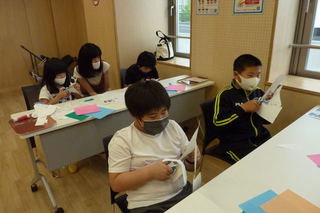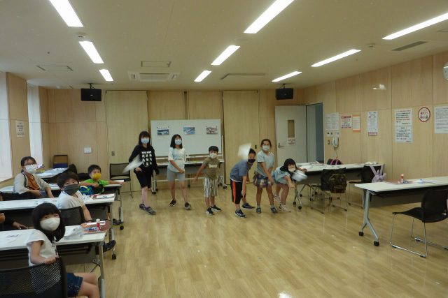 正味1時間程の紙飛行機遊び。参加した児童は、講師の説明をしっかり聞き、上手にハサミを使いこなし、折り紙飛行機を含め4機を見事完成させ飛ばすことができました。