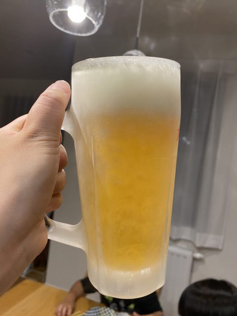 冷凍庫でキンキンに冷やしたジョッキでかんぱ〜い🍻