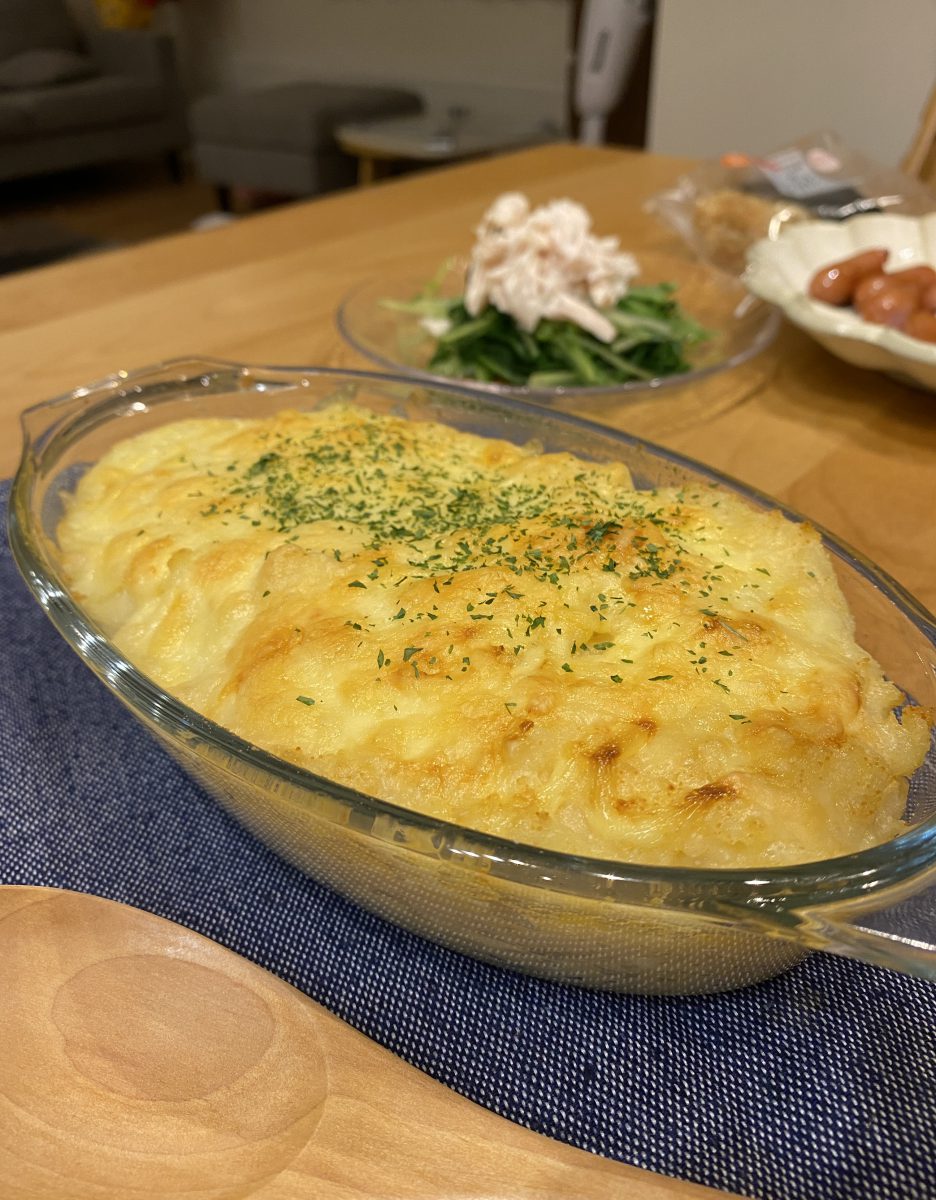 ちなみに、つまみは子どもたちが幼稚園の芋掘りで収穫してきたじゃかいもで作った「明太ポテマヨチーズ焼き」🥔