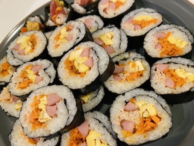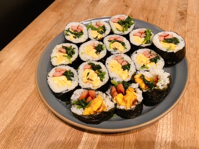 色々はみ出ちゃってる端っこが1番おいしいんですよー!キムパは我が家の定番になりました。